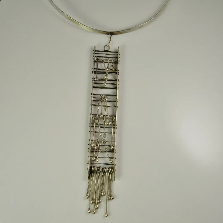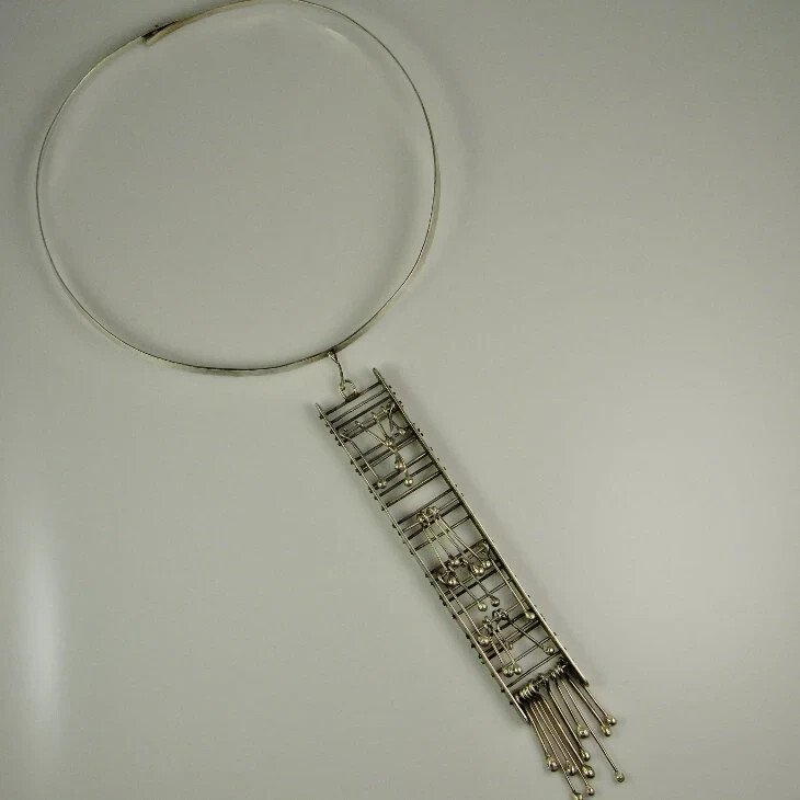 astonishing 1970s designer custom made fine 835 silver necklace with a long kinetic focal pendant.