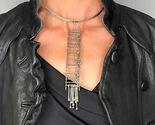 front pendant itself measures 6 5/8" long and is 7/8" wide. Inside the collar the circumference of the necklace is 15" around.