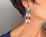 OOAK Inlay Southwestern Drop Chandelier Screw On Earrings Non Pierced 1970s