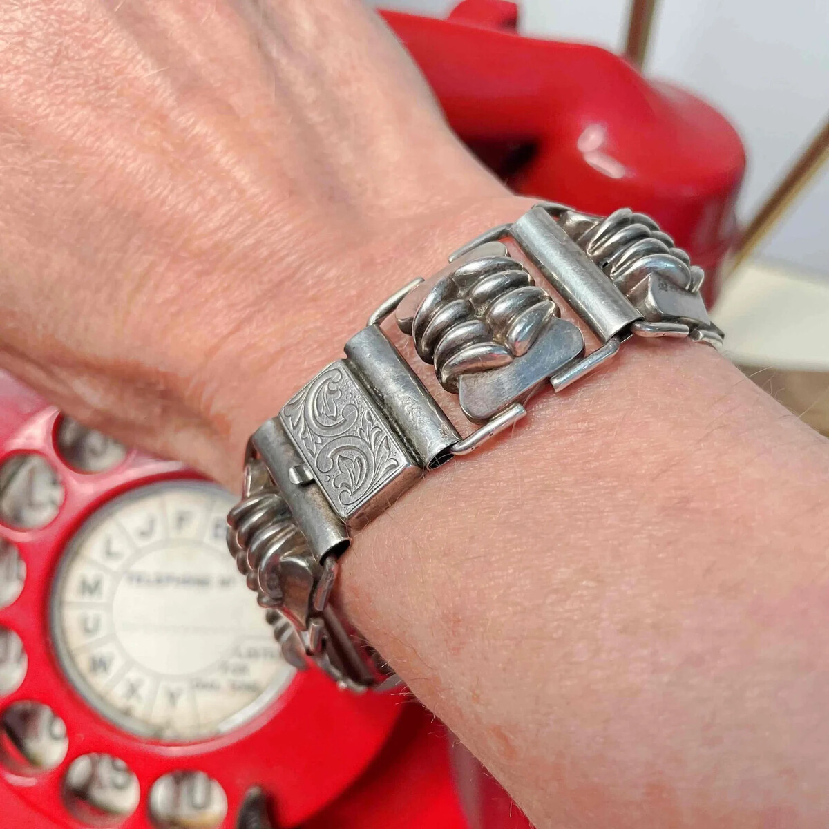- OOAK antique ART Deco Unisex Silver Bracelet Jazz Age 1930s Jewelry OFFeR!