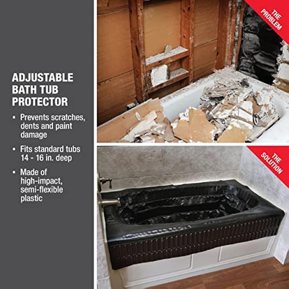 Oatey Bath Tub Protector is designed to protect against tub damage during home construction. The Bath Tub Protectors is made of a high-impact plastic and is designed with a padded bottom to absorb shock and prevent scratch or dent damage to tub finish. The Adjustable Tub Protector feature allows tub protector to be shipped in nested, collapsed position for reduced storage space and expand to fit standard tub styles from 14 in. to 16 in. D.