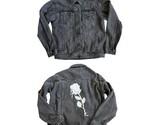 - Obey Women’s Jean Trucker Jacket Sz S Faded Black Denim Rose Stencil Graphic GUC