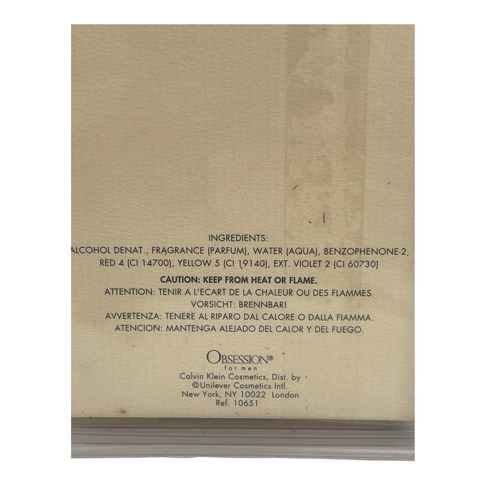 - Obsession for men Eau de Toilette EDT Spray by Unilever Cosmetics 4 fl oz Sealed