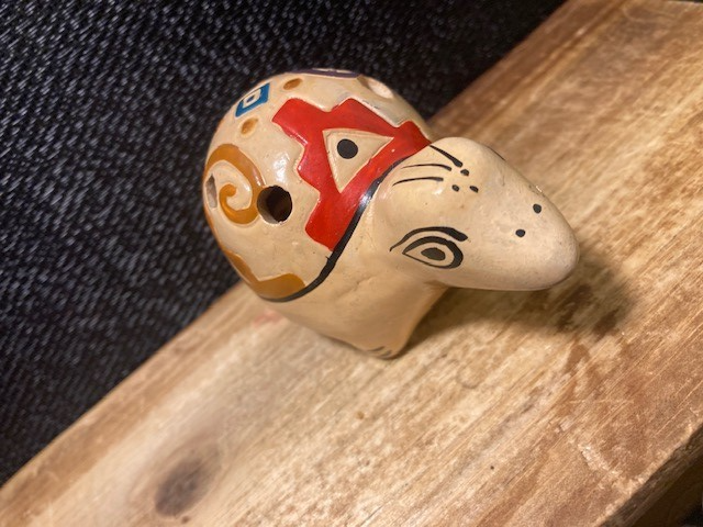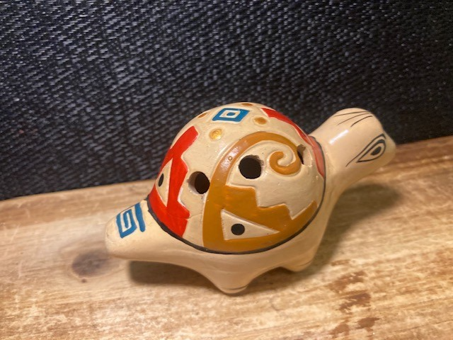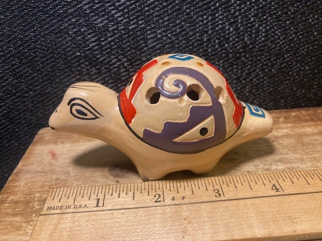 - Ocarina Folk Art Whistle Flute Turtle Clay Pottery - Hand Made South American