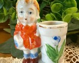- Occupied Japan Girl Figurine Toothpick Holder –Hand Painted Miniature Vase 1940s