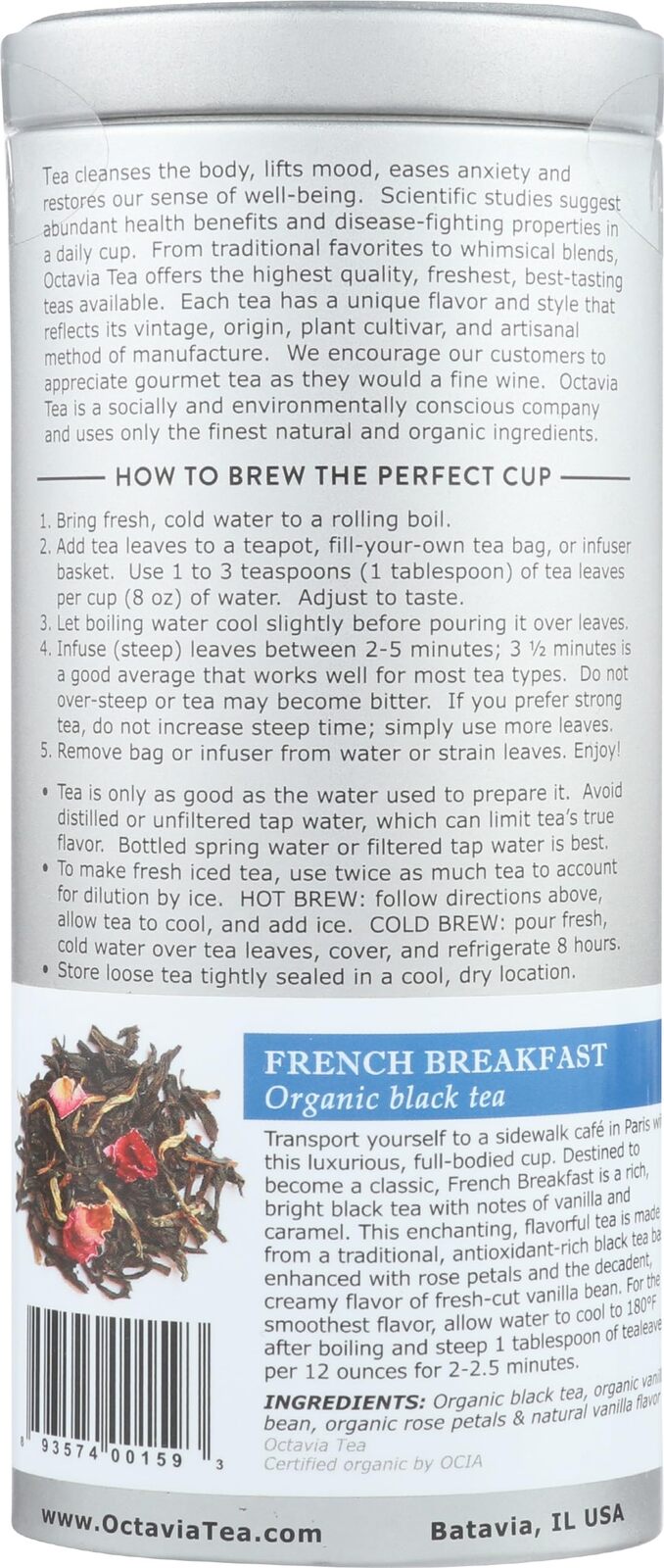 OCTAVIA TEA Organic French Breakfast Loose Tea Tin, 3 OZ |