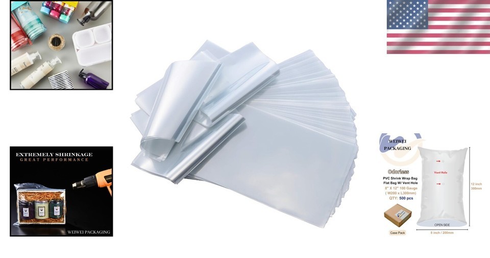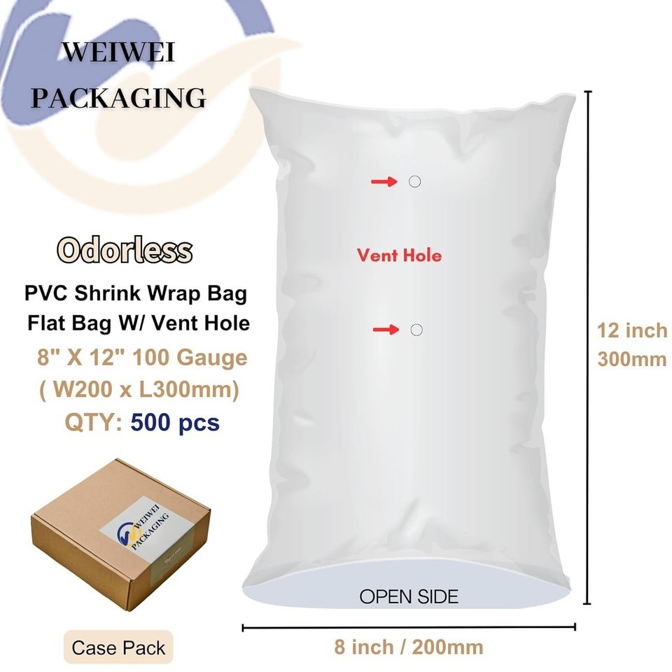 - Odorless 8x12 inch PVC Heat Shrink Bags - 500PCS with Micro-Perforated Vents