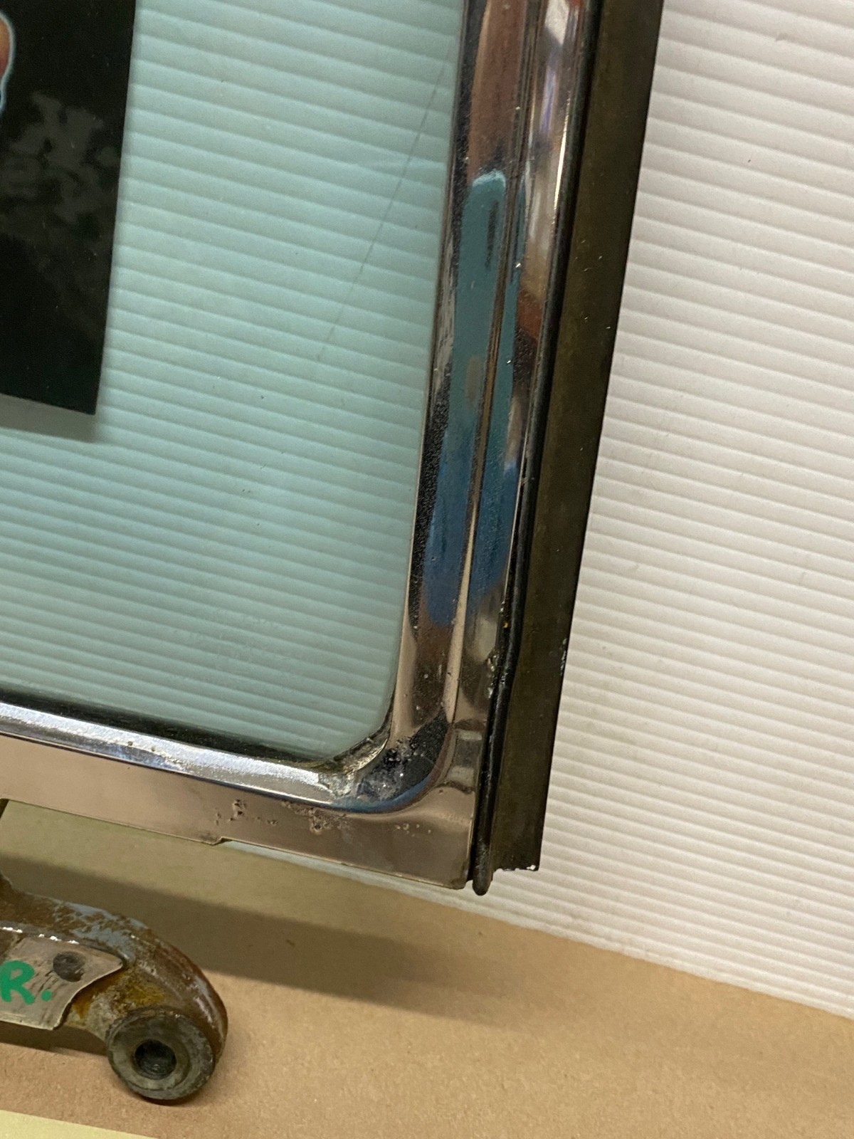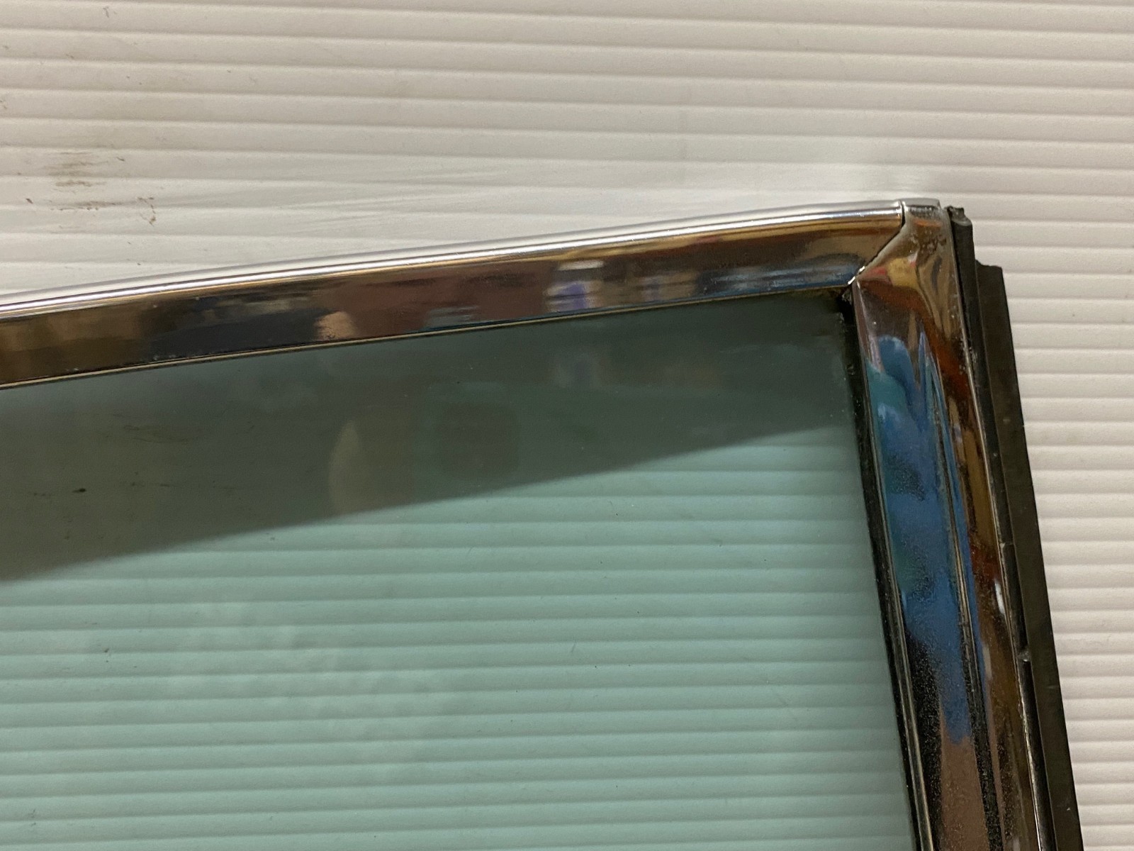 This OEM passenger side rear quarter window glass and frame are in excellent condition. Chrome has a nice reflective shine, overall very minor pitting. Glass is fully intact and no major scratches. Cruise night quality. The front lower outer corner has a little heavier pitting, but overall still minor. Please view the video (https://youtu.be/l5IuedczPFs