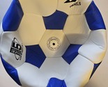 The Official Lubricated Needle Weighted Soccer Ball Size 5 in Blue and White is a high-quality training ball made of composite leather with machine-stitched seams. It is suitable for outdoor play on artificial turf, turf, sand, and other surfaces. The vintage design features a weighted construction, making it ideal for training sessions and practice games. This authentic soccer ball from the official brand is a must-have for soccer enthusiasts looking for a durable and reliable ball to enhance their skills on the field.