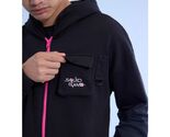 Design: Black hoodie with bright pink zipper and hem details