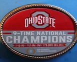 The Ohio State Buckeyes NCAA National Championship Epoxy Buckle is a unisex adult-sized accessory featuring the Ohio State Buckeyes team colors and logo. The buckle is officially licensed for NCAA Championship events and is designed in a size of 4" x 2 1/2". Made in the United States, this product is perfect for fans looking to showcase their team pride, particularly for football enthusiasts supporting the Ohio State Buckeyes.