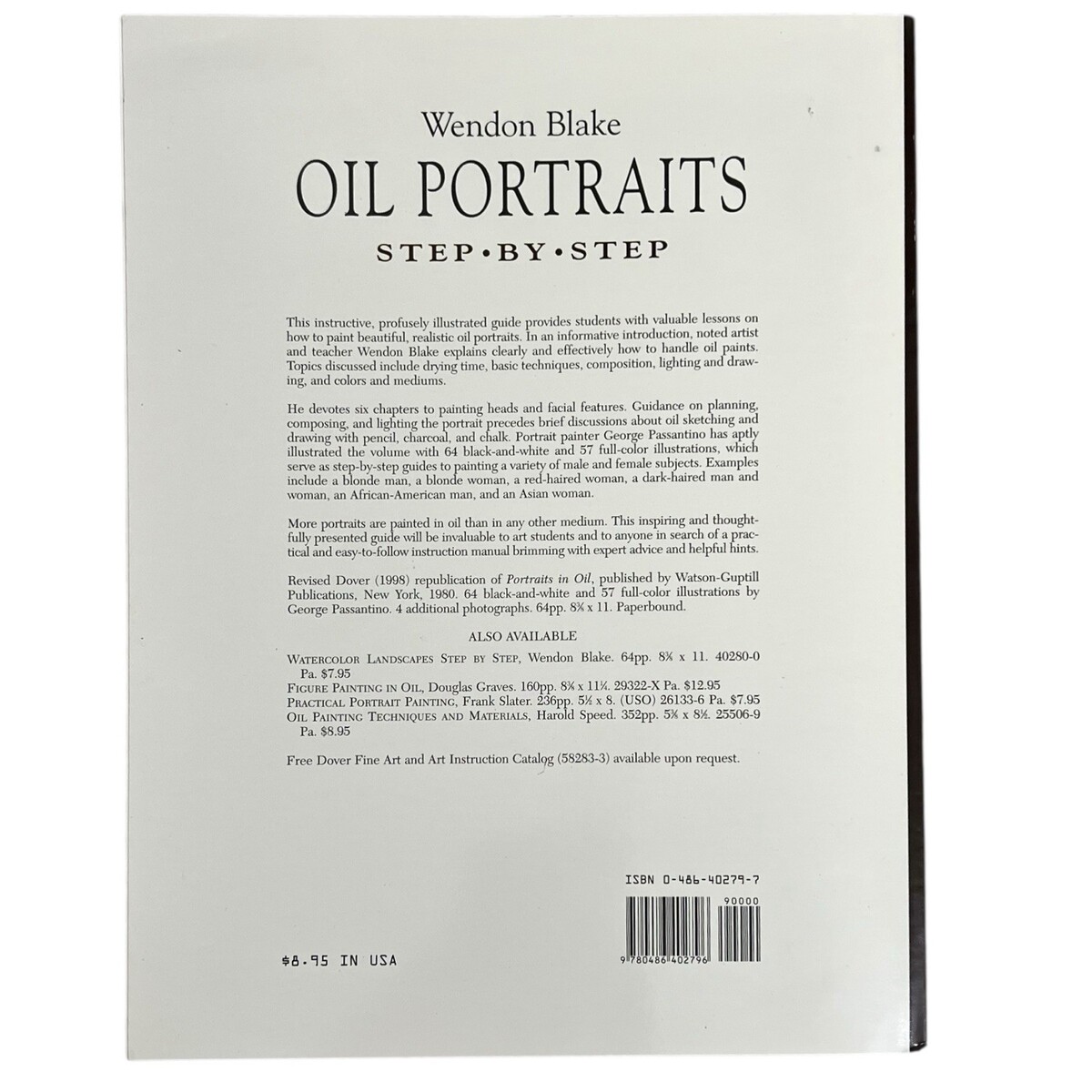 - Oil Portraits Step By Step Wendon Blake Dover Art Instruction Book 1998 PB