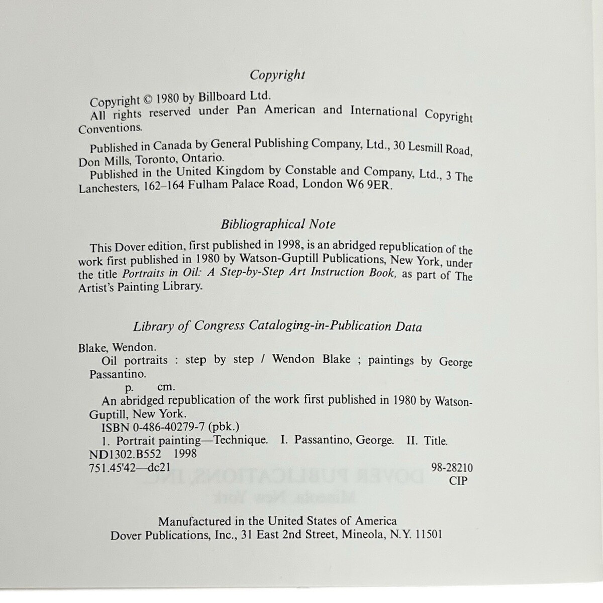 art instruction, painting techniques, oil portraits guide, Wendon Blake book, Dover art book, George Passantino, step by step painting, portrait painting manual, artist reference