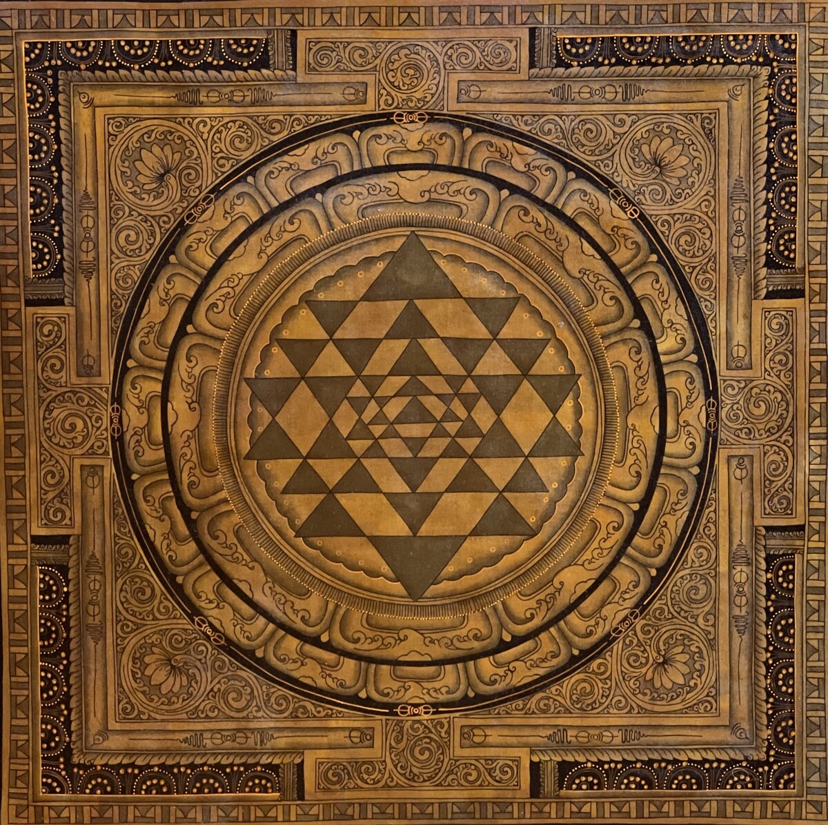 - OIL VARNISHED SHRI YANTRA THANGKA PAINTING | MEDITATION WALL HANGING | PAUVA ART