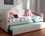 Oksana Beige Fabric Button-Tufted Twin Size Sofa Daybed w/Roll-Out Trundle