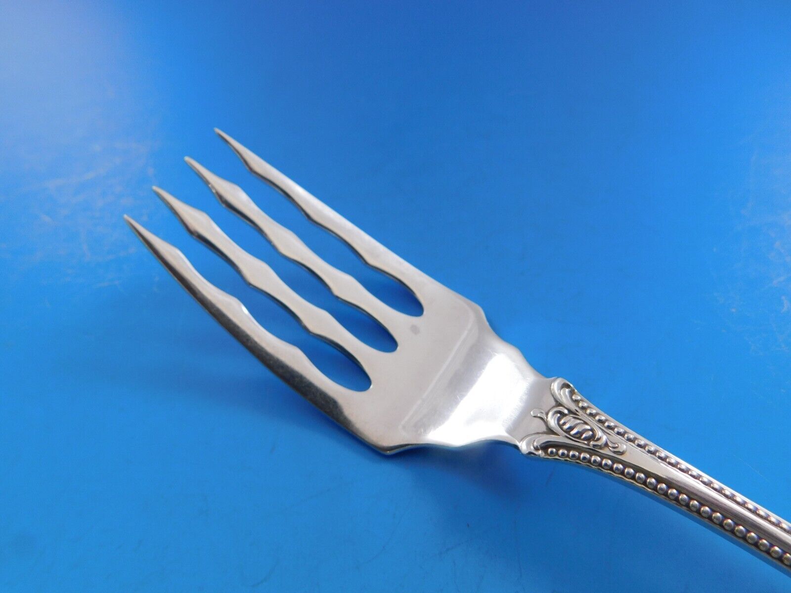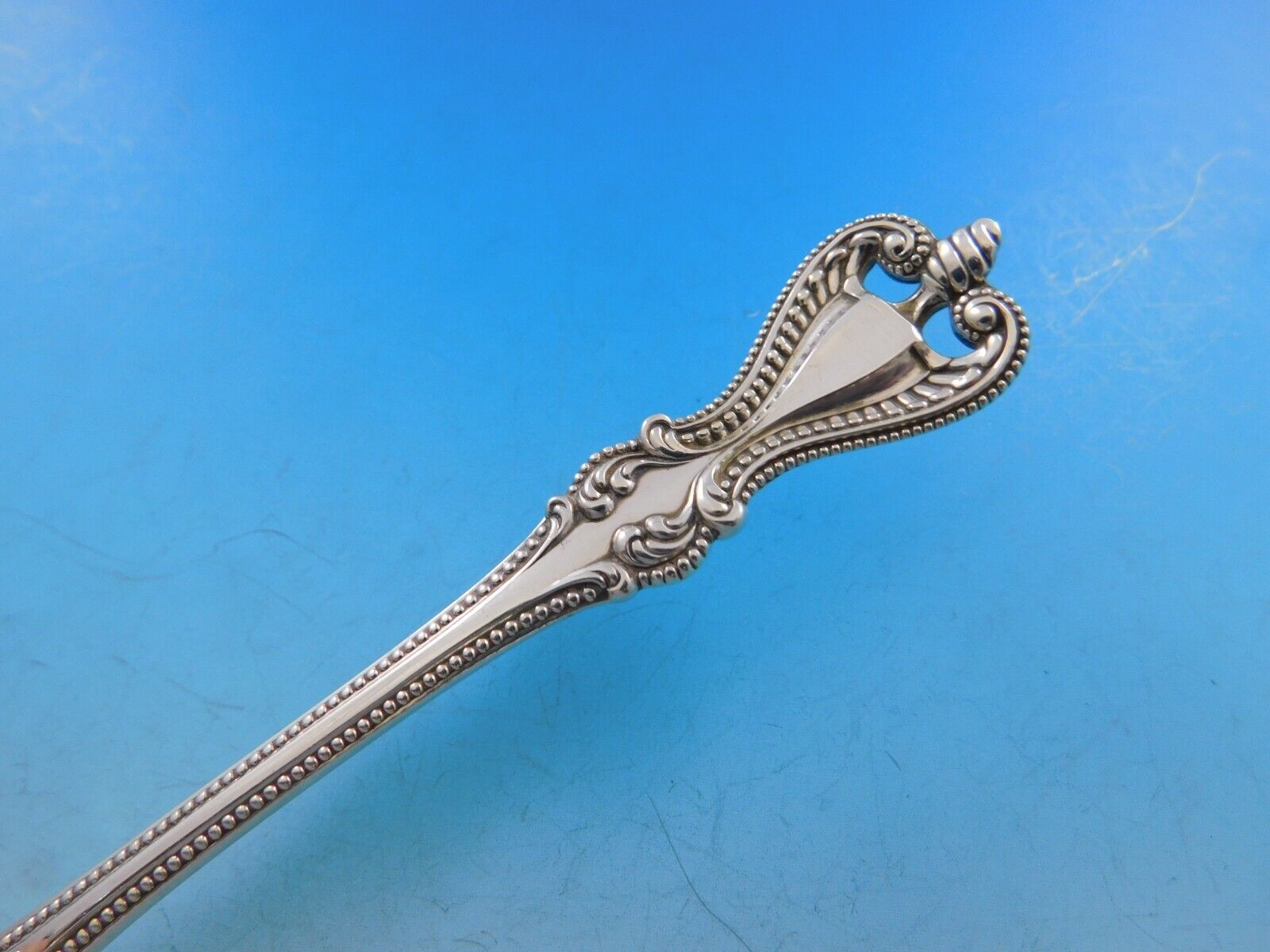 Lavishly decorated, Old Colonials graceful curves descend along a beaded handle. Representing the height of the silversmiths craft, Old Colonial is a peerless expression of sophistication in sterling.