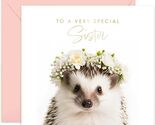 Old English Co. Hedgehog Sister Birthday Card Floral Gold Blank Envelope