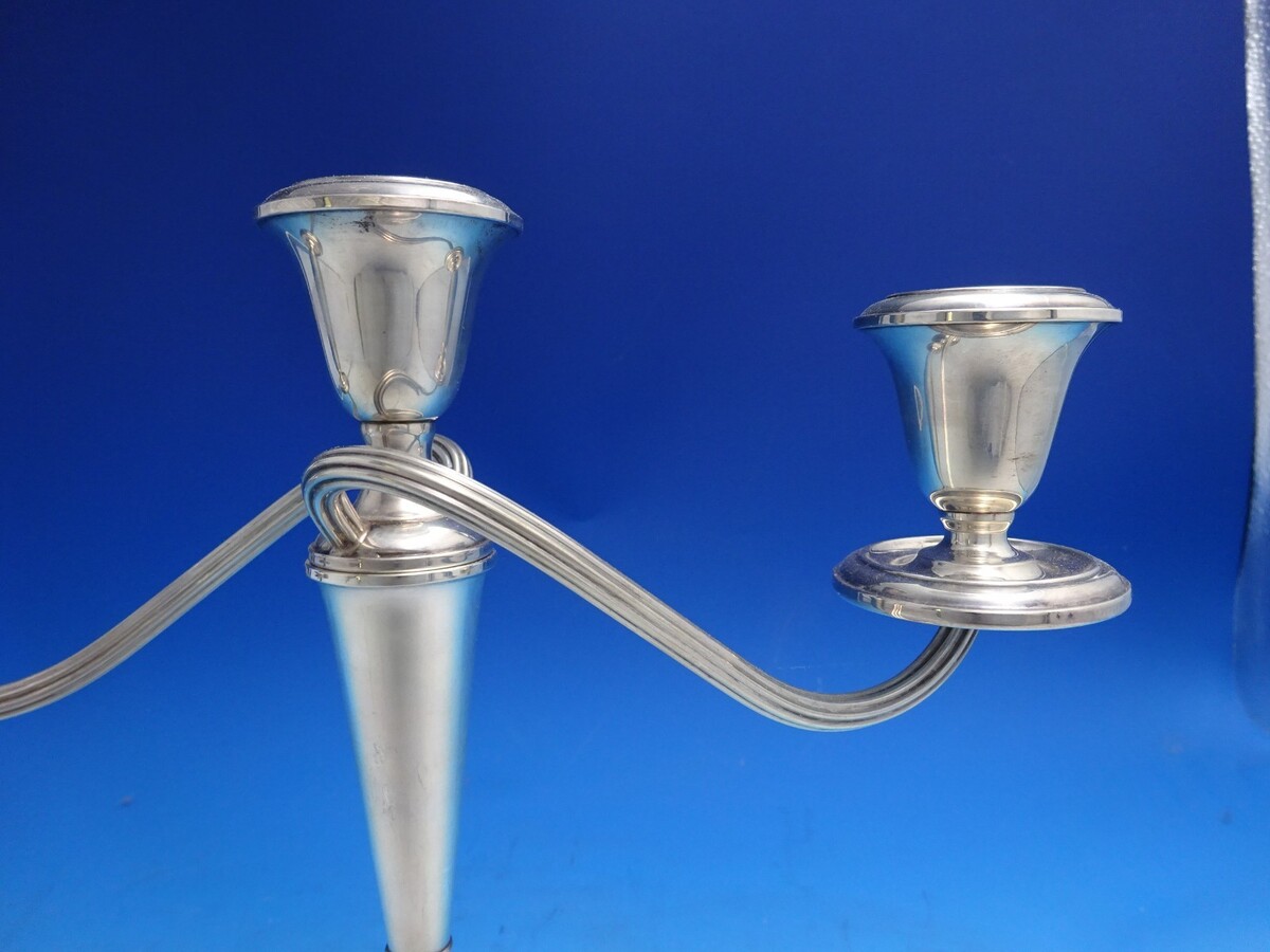 - Old French by Gorham Sterling Silver Candlestick Pair 3-Light #808/1 (#8606)