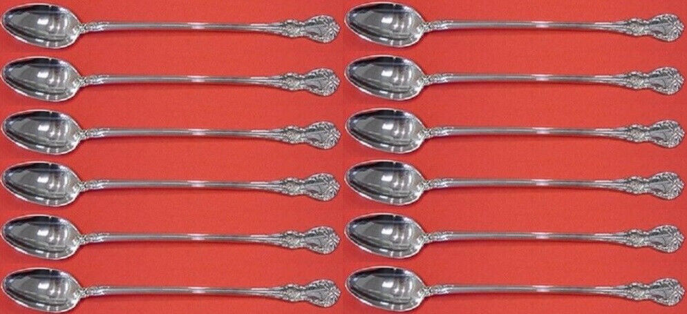 Set of 12 sterling silver Iced Tea Spoons 7 7/8" in the pattern Old Master by Towle. They are not monogrammed and are in excellent condition.