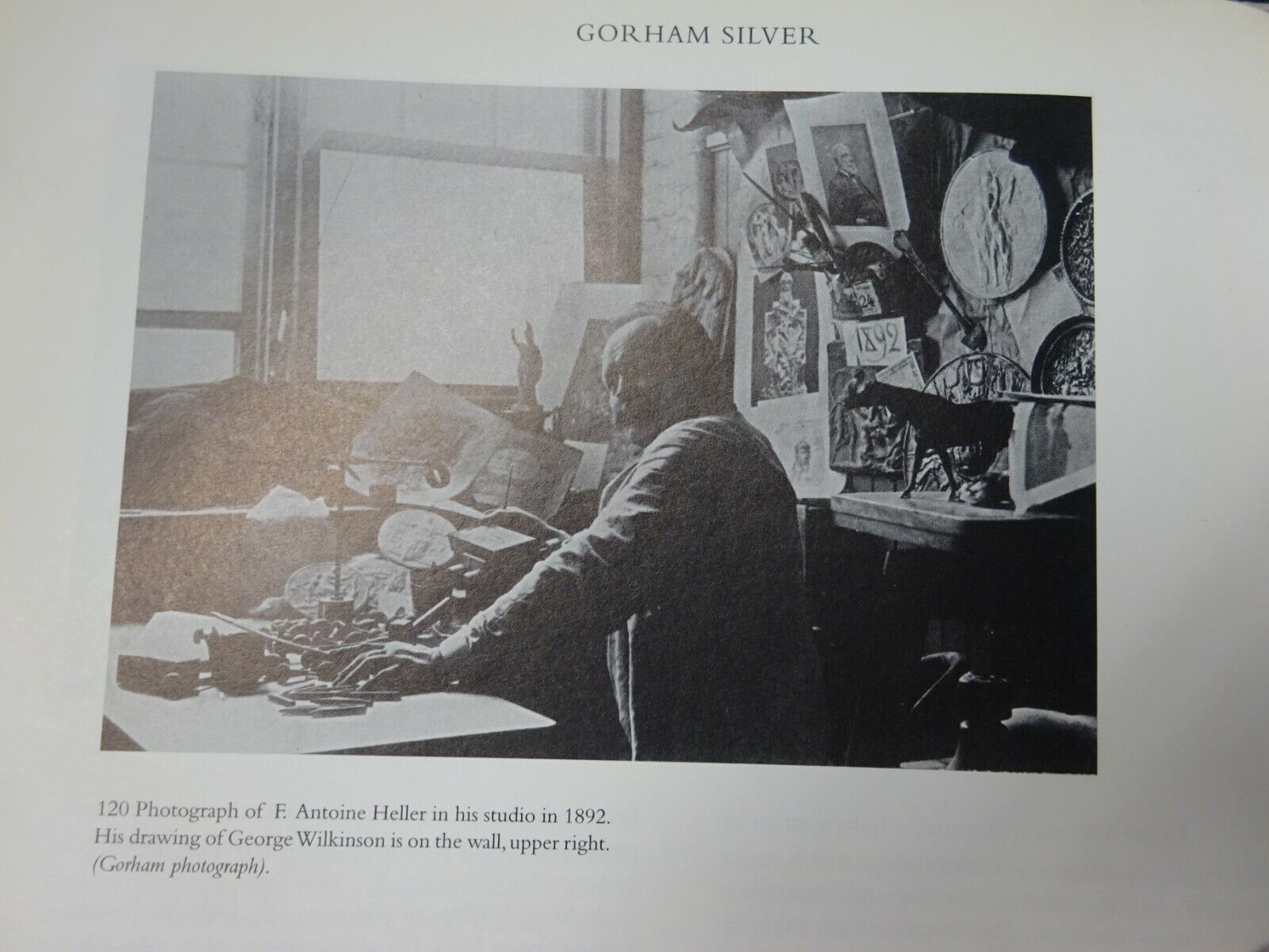 Heller worked as a die chaser - he hand finished the molds used in die stamping silver. Due to the technical difficulty and great detail of the work - and the great expense of making dies for stamping - this was traditionally the highest paying craft position in a silver (or metal) shop. Heller went on to design silver at Gorham and left to work for Tiffany, creating the Olympian pattern. After that he studied at L'Ecole des Beaux Arts in Paris, where Gorham lured him back to work in Providence, where he created some of the most exquisitely die stamped patterns ever made including: Old Masters, Versailles, Cluny, St. Cloud and Mythologique. (See Gorham Silver by Charles Carpenter and the Gorham Flatware 1888 Catalog Reprint.)