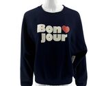 Old Navy Bon Jour Womens Graphic Sweatshirt Top Size M Navy Blue Pullover NEW