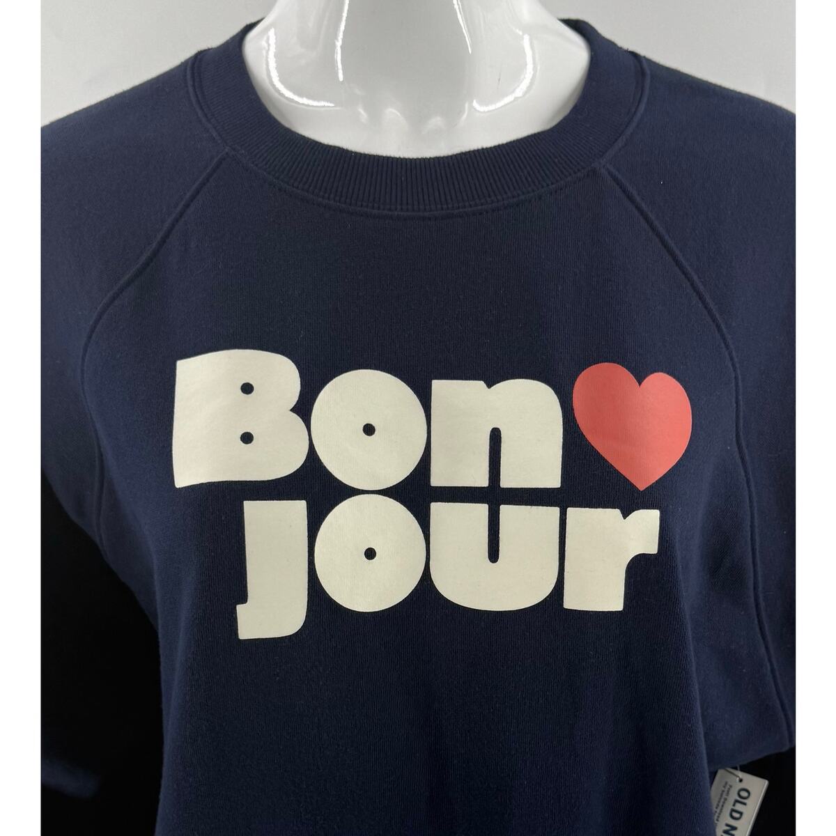 - Old Navy Bon Jour Womens Graphic Sweatshirt Top Size M Navy Blue Pullover NEW