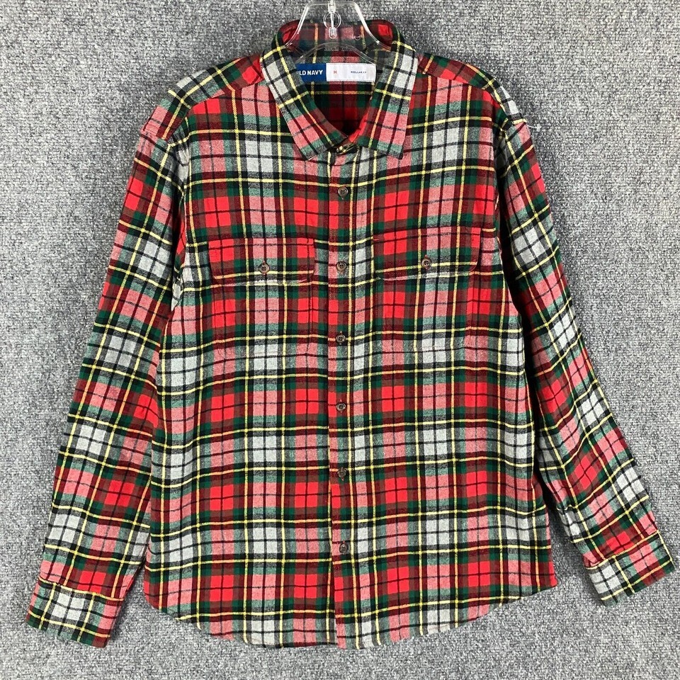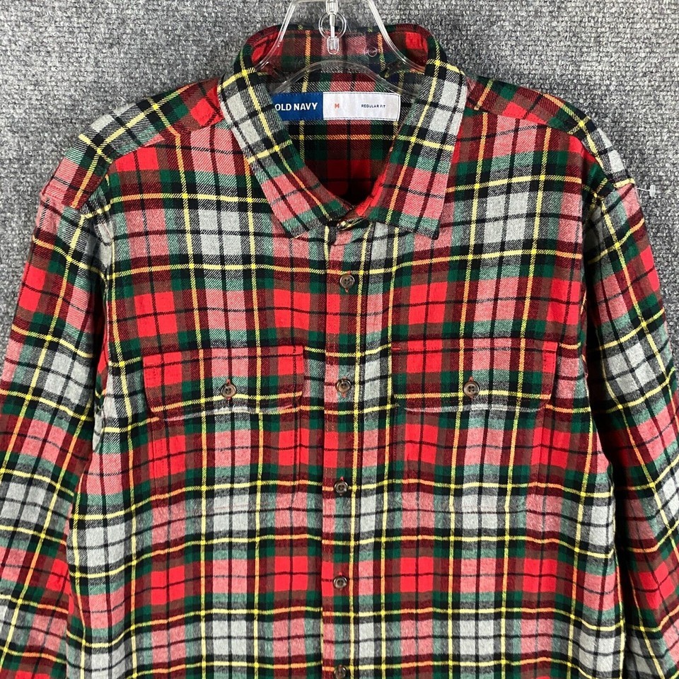 - Old Navy Flannel Shirt Men's Medium Plaid Regular Fit Button Up 100% Cotton