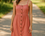 Women's Button-Front Sundress Sleeveless Linen Blend Midi Dress Pink Summer Casual M
