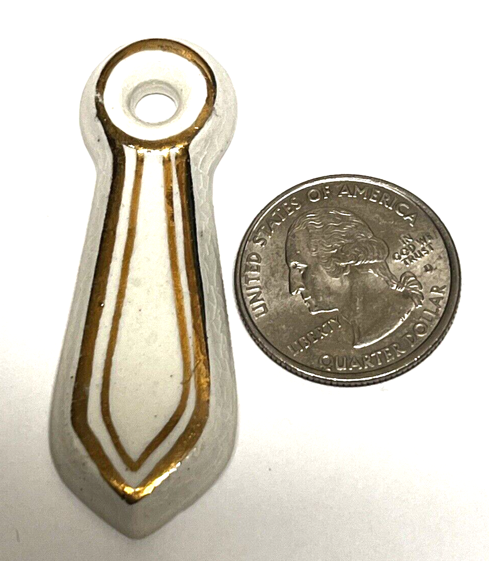 Old Porcelain Keyhole Lock Cover White w Gold 2 1/4 Inch Long No screws come with it Some wear. See Photos.