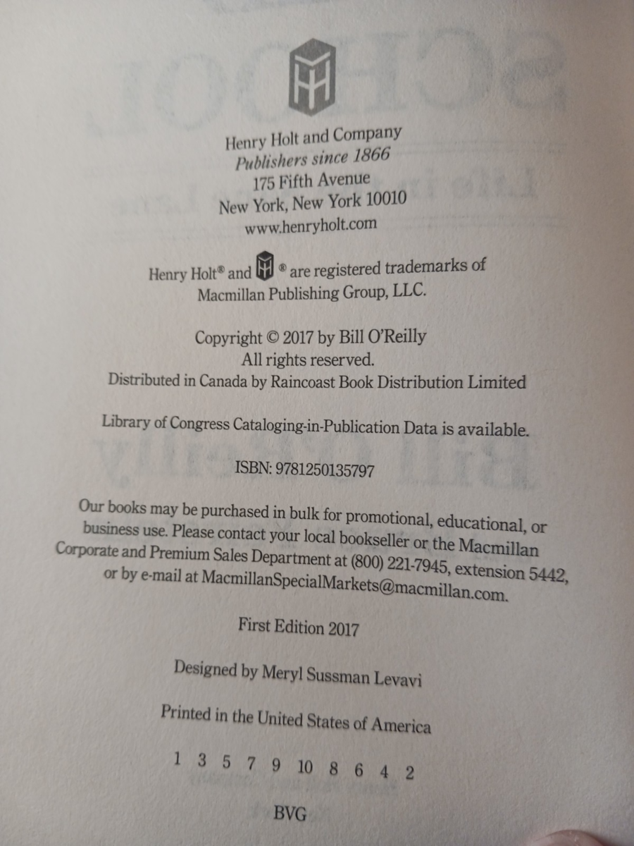 - Old School Life in the Sane Lane by Bill O'Reilly (2017, Hardcover) 1st Edition