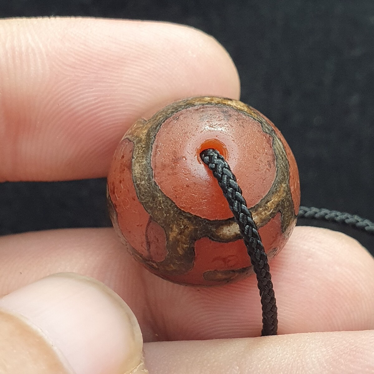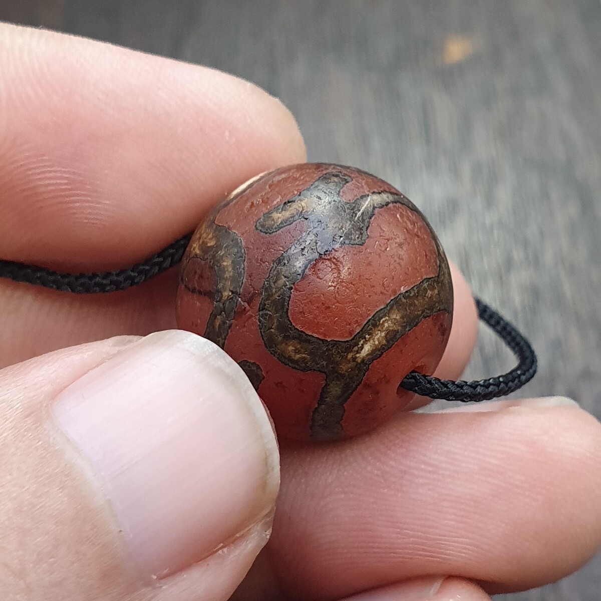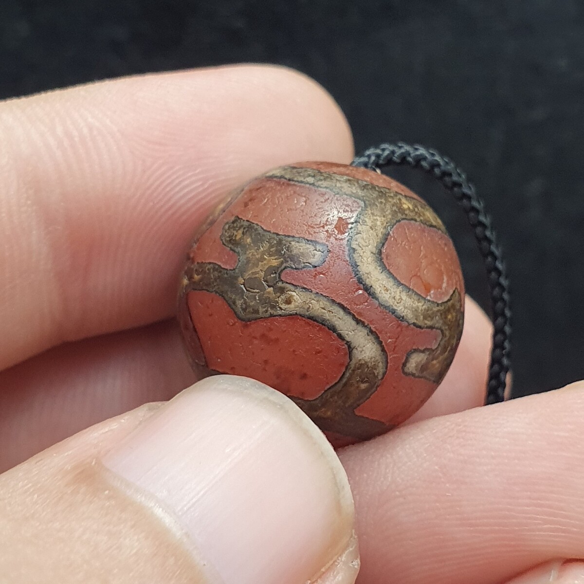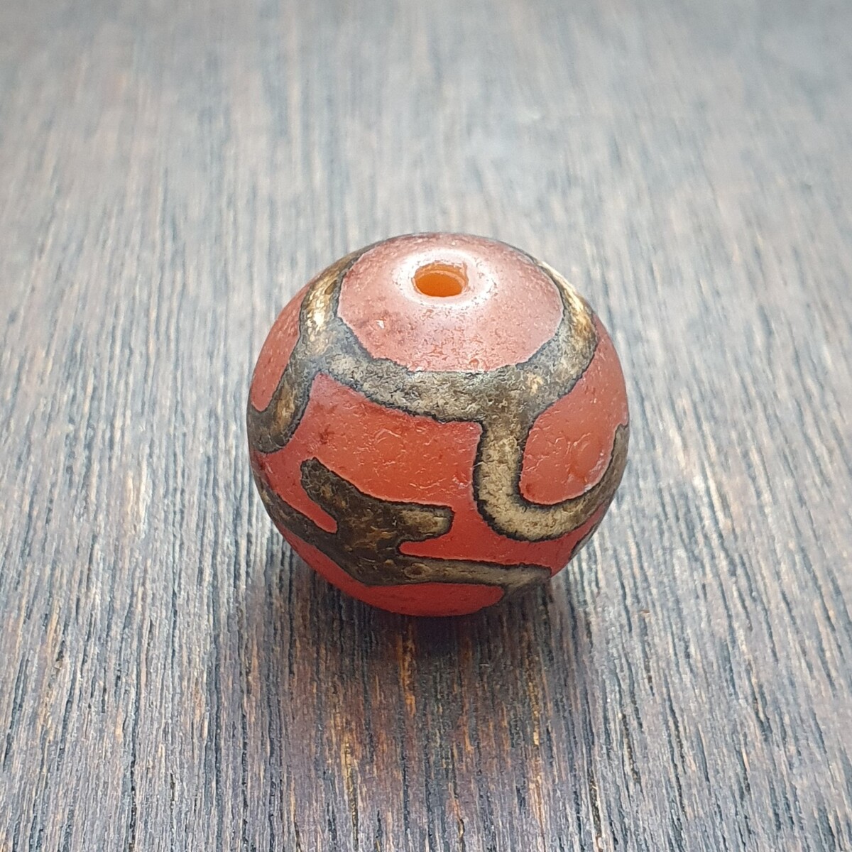 - Old Tibetan Himalayan Etched agate Decorated amulet bead #1