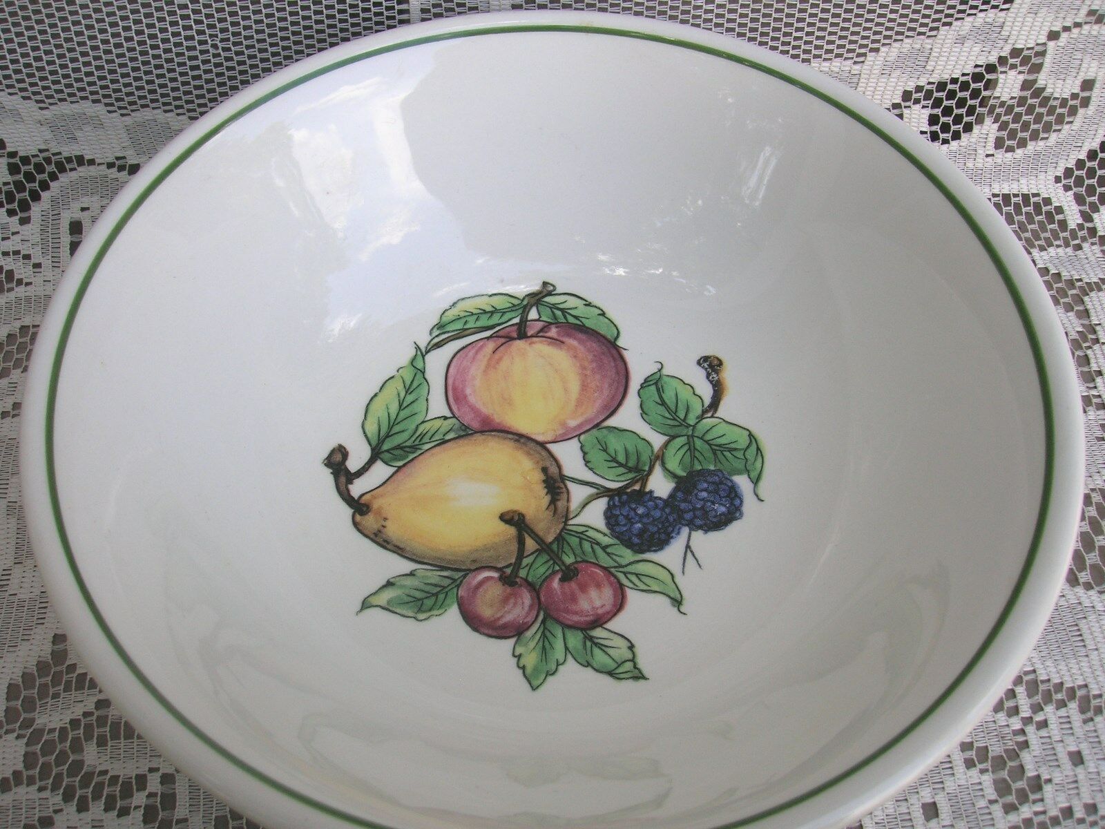 Old Vintage 9-1/2" Ribbed Mixing Bowl w Fruit Pattern Kitchen Tool Italy