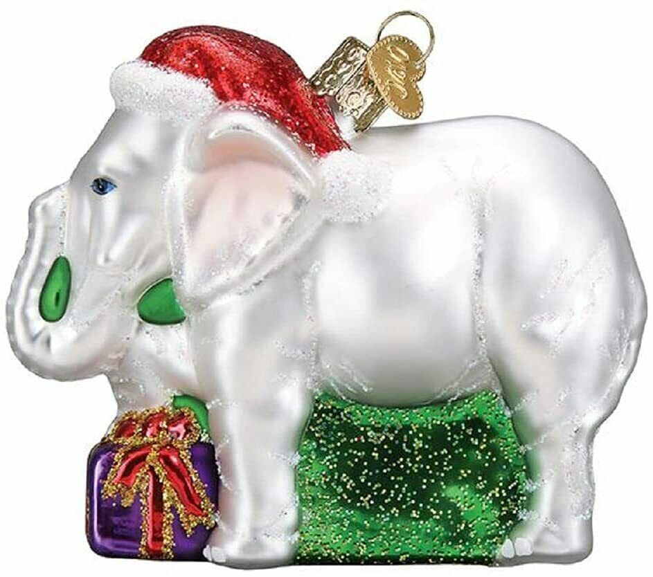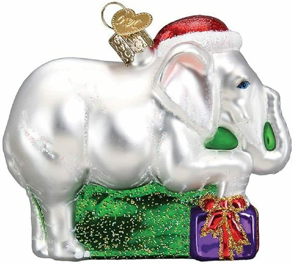 BRAND NEW with Tags OLD WORLD CHRISTMAS WHITE ELEPHANT w/GIFTS TRADITIONAL GLASS XMAS ORNAMENT 12592