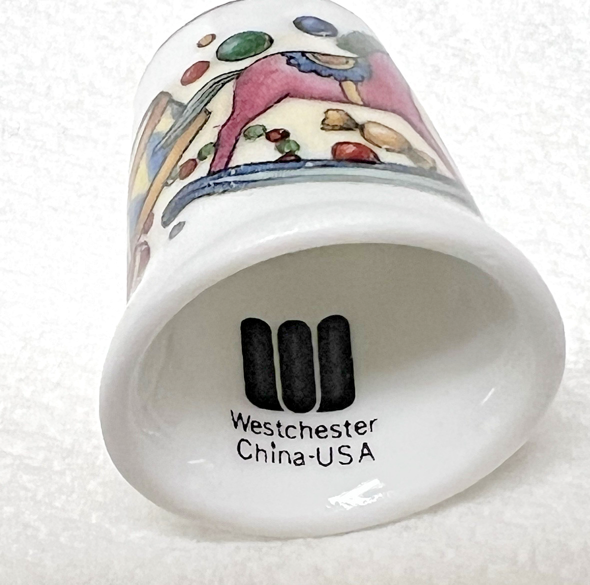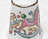 Older Thimble Children's Toys Rocking Horse Drum Horn Bone China Westchester USA In Great shape about 7/8"