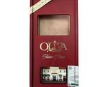 Collectible **Oliva Festive Edition 2024** cigar box featuring a detailed **Tabacalera Oliva factory ornament**. The box is made of rich red-stained wood with gold lettering and a display window that showcases the included ornament. Originally designed to hold a four-cigar sampler, this piece now makes an excellent keepsake or display box for cigar aficionados and collectors of cigar memorabilia. Ornament: Resin ornament featuring the Oliva Tabacalera building with "2024," measuring approximately 1.75 x 2.75 inches.