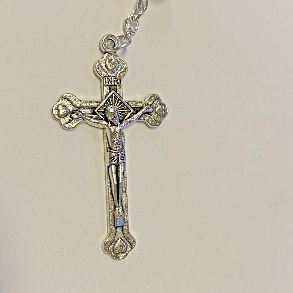 You are purchasing a beautiful olive wood medium size rosary that comes with a center medal with an image of Our Virgen Mary and on the other size it contains, holy soil from Jerusalem.