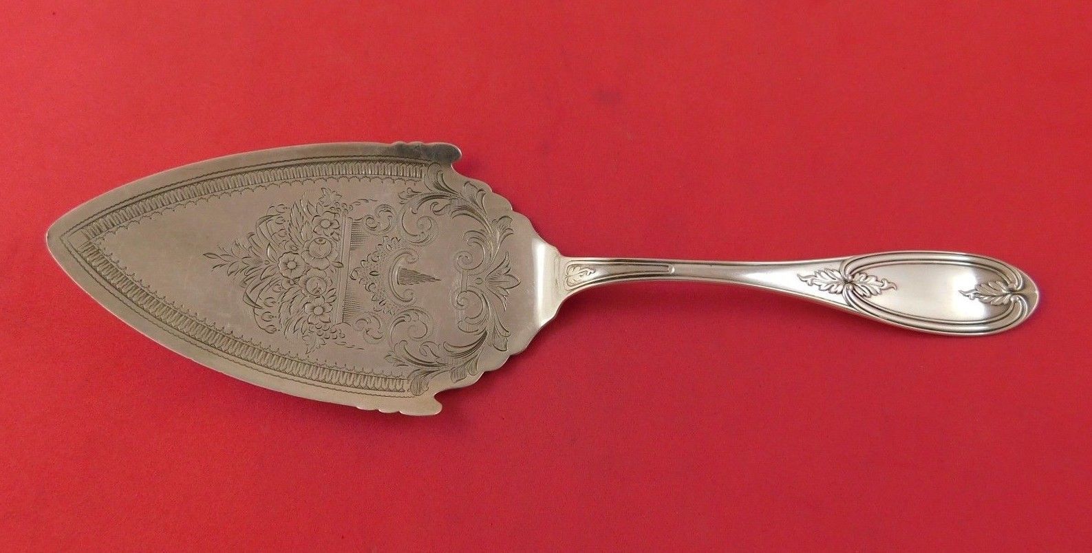 Olive by Pear Bacall of Boston 1848-1875 sterling silver Pie Server, Bright-Cut Basket of Flowers, "Mother to Mary". It is monogrammed (mono on reverse) and is in excellent condition.