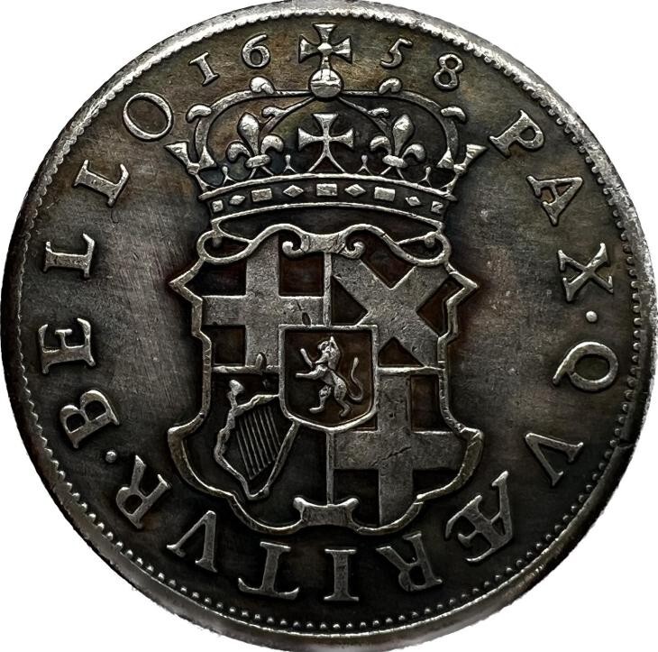 Esta replica de moneda de fantasía historica Oliver Cromwell 1658 es una notable reproduccion de un raro artefacto historico de la Guerra Civil Inglesa y la posterior era del Protectorado. La inscripcion en la moneda dice "OLIVAR D G PANG SCO ET HIB cPRO, 1658 PAX Q V AERITVR BELLO", que se traduce como "Oliver, por la gracia de Dios Protector de Inglaterra, Escocia e Irlanda, 1658, paz lograda a traves de la guerra." Acuñada durante el reinado de Oliver Cromwell, una figura fundamental en la historia inglesa de mediados del siglo XVII, esta moneda simboliza las profundas transformaciones políticas y religiosas de esa epoca. Cromwell sirvio como líder militar y político, convirtiendose finalmente en el Lord Protector de Inglaterra, Escocia e Irlanda. Su mandato estuvo marcado por cambios radicales, y su legado continúa provocando discusion y debate. Esta replica de moneda sirve como un recuerdo importante de un período significativo en la historia britanica, atrayendo maravillosamente tanto a entusiastas de la historia como a coleccionistas por igual. No dude en ponerse en contacto para cualquier consulta sobre esta exquisita pieza.