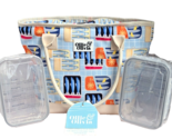 The set includes 2 containers (6 x 4 x 3 inch) for organizing your lunch items and the tote size of 9.5 x 14.5 inches makes it easy to carry.