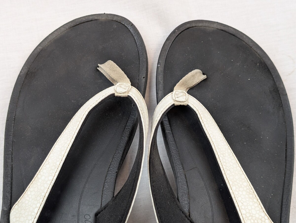 Up for sale is a pair of OluKai Kulapa Kai White Black Flip Flop Sandals - Size US Women's 11