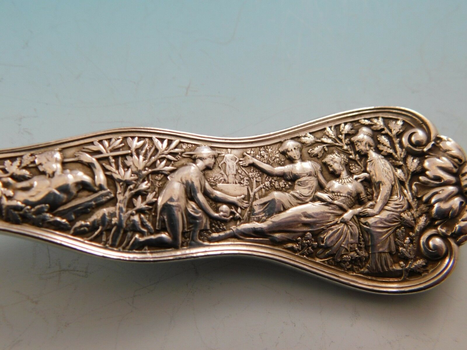 The Olympian pattern, which was introduced by Tiffany Co. in 1878, is the most elaborate and complex of all Tiffany flatware designs. Each piece of Olympian is designed to illustrate a well-known story of Classical mythology. The subjects vary with the size of the handles on the different pieces.