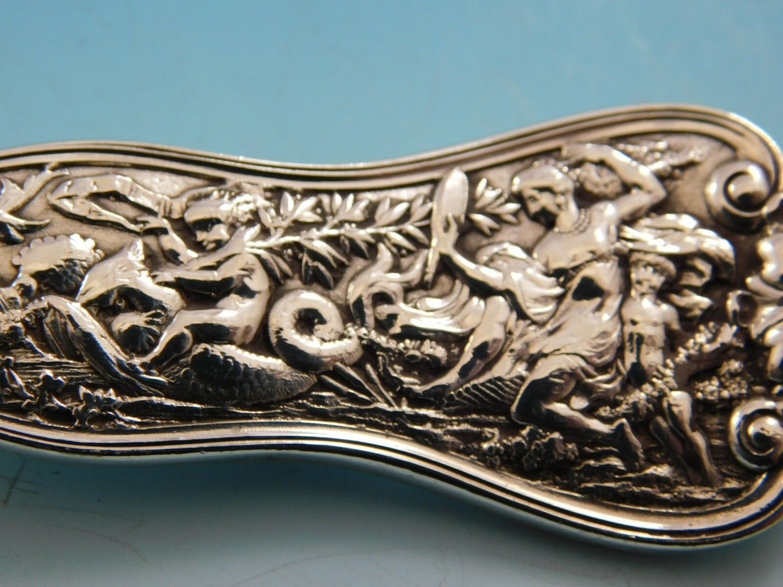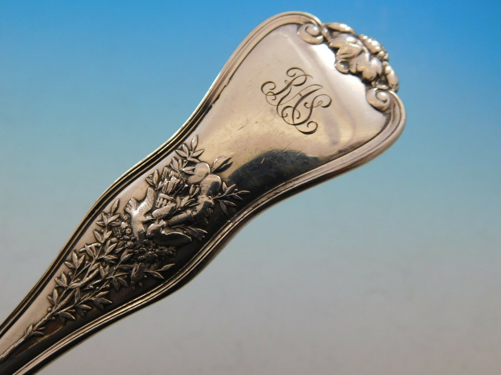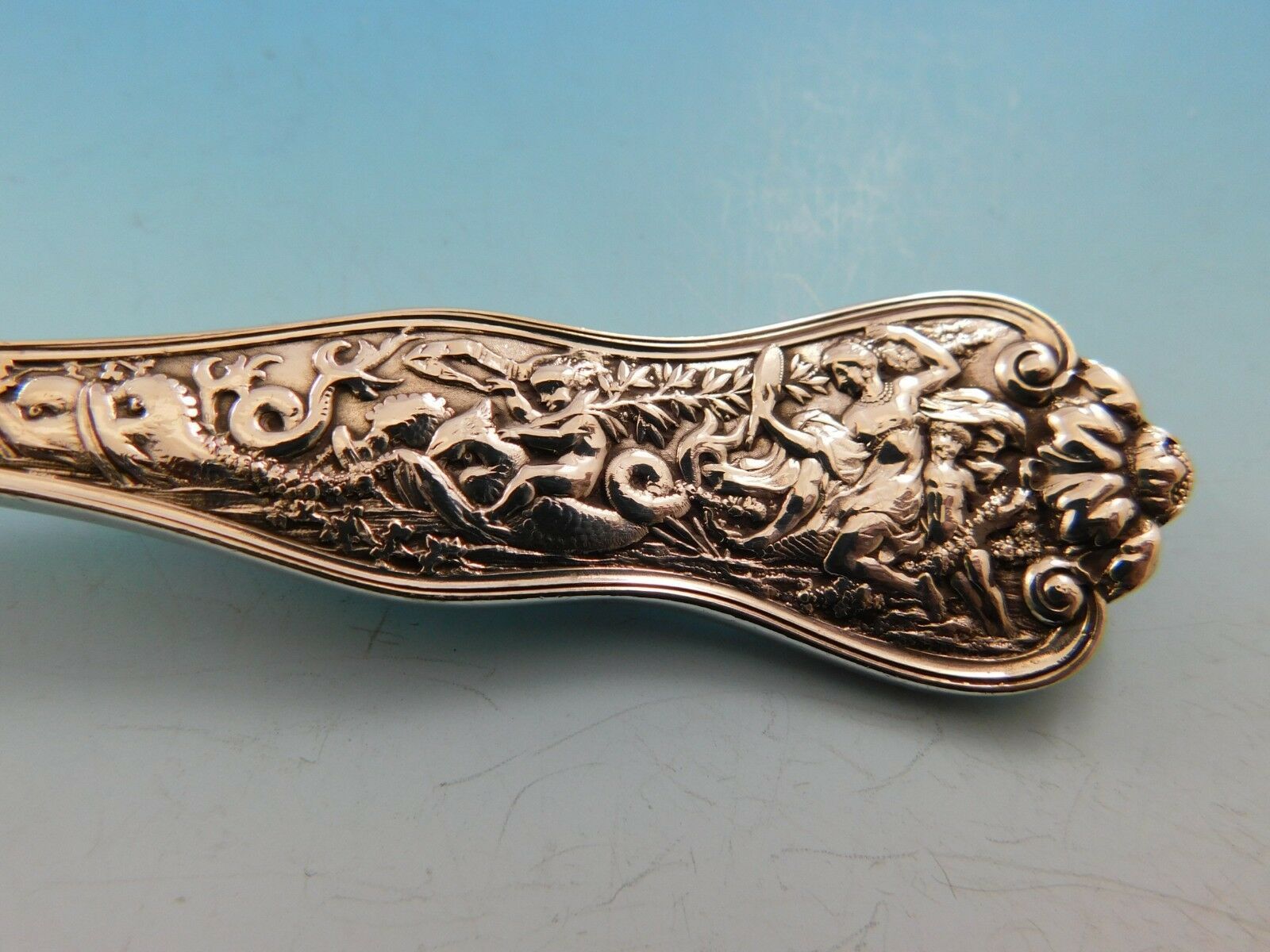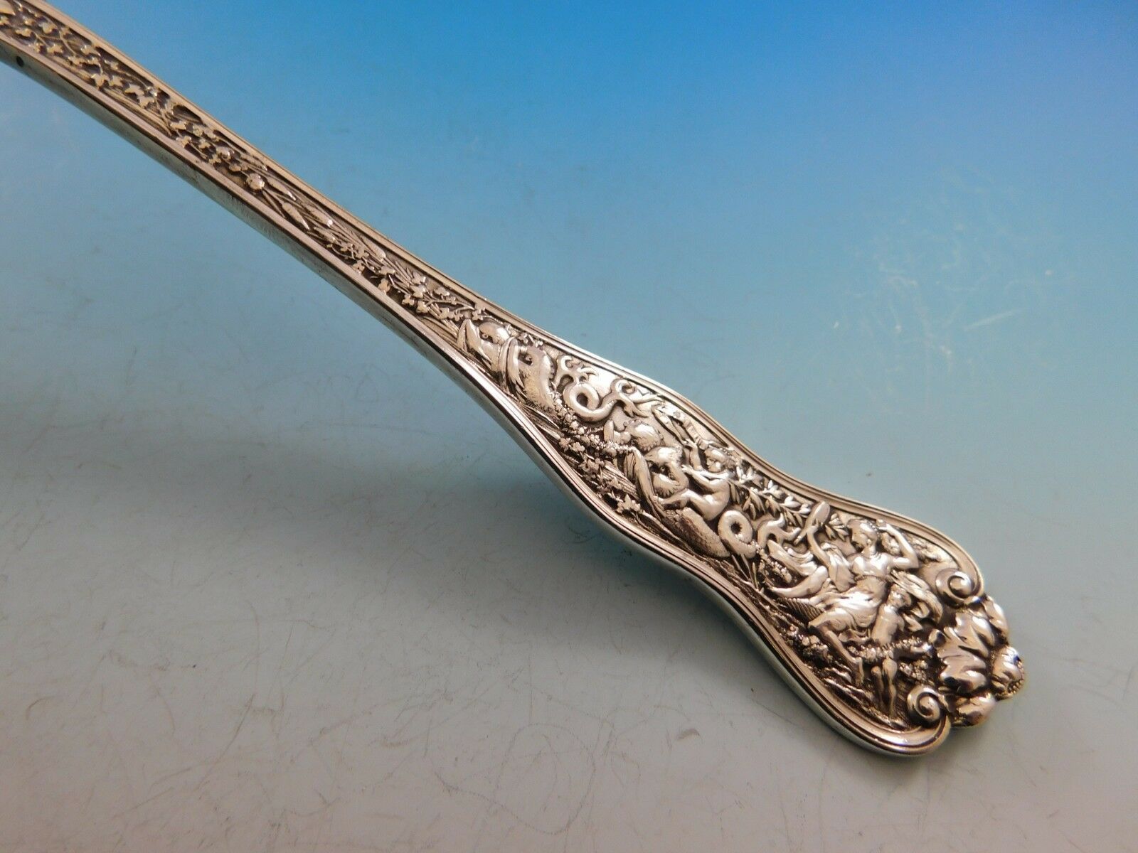 The Olympian pattern, which was introduced by Tiffany Co. in 1878, is the most elaborate and complex of all Tiffany flatware designs. Each piece of Olympian is designed to illustrate a well-known story of Classical mythology. The subjects vary with the size of the handles on the different pieces.
