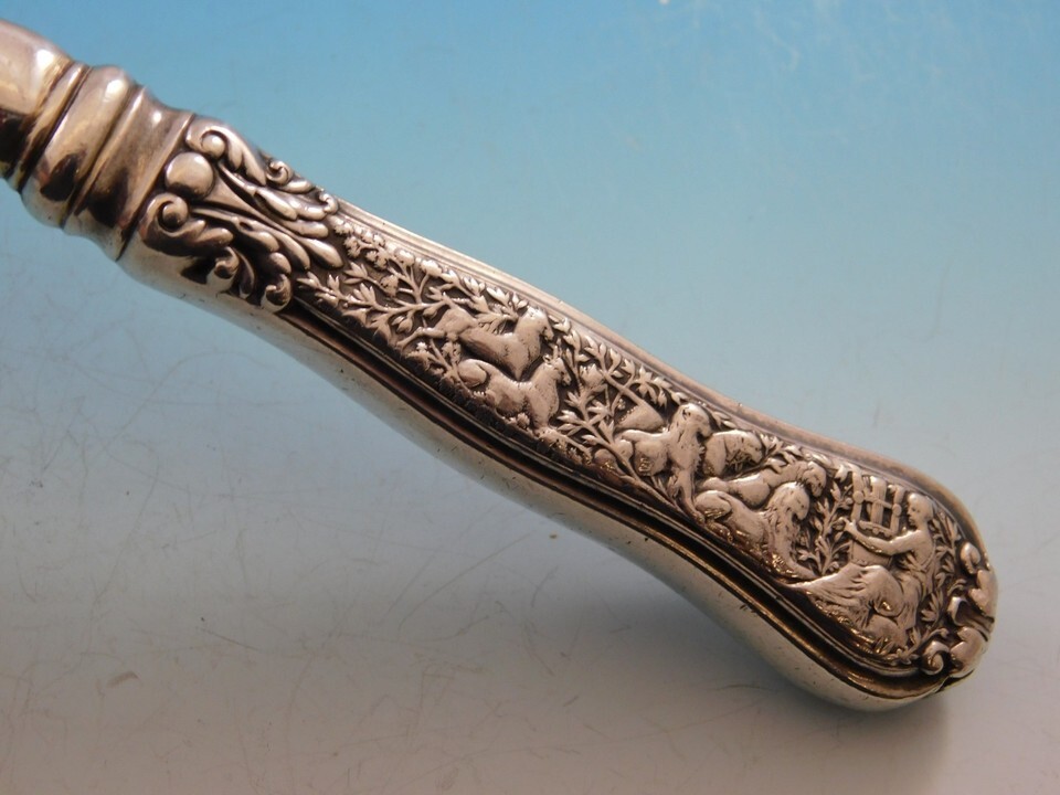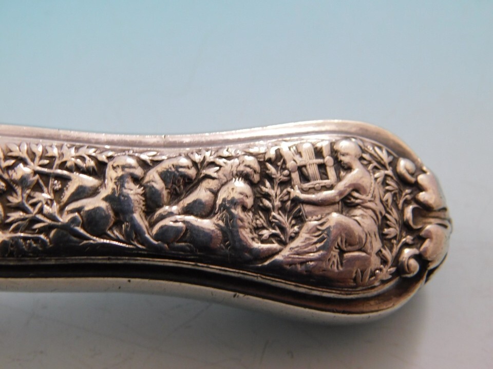 The Olympian pattern, which was introduced by Tiffany Co. in 1878, is the most elaborate and complex of all Tiffany flatware designs. Each piece of Olympian is designed to illustrate a well-known story of Classical mythology. The subjects vary with the size of the handles on the different pieces.
