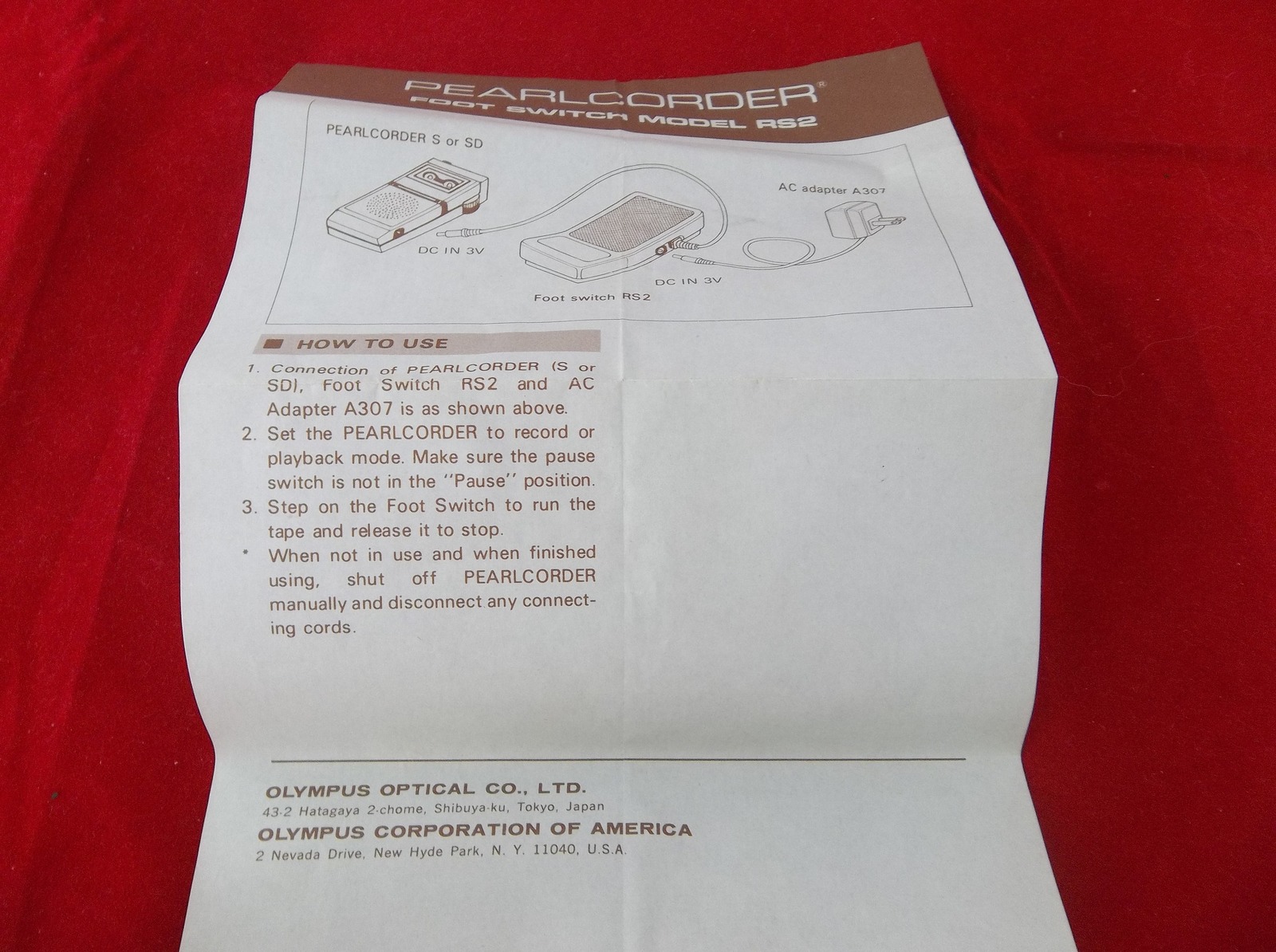 - Olympus Optical Co LTD Pearlcorder Dictation Foot Switch Model RS2 NIB