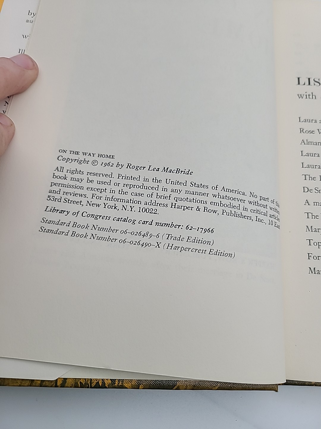- On The Way Home Laura Ingalls Wilder 1962 Harper & Row Hardcover Dust Jacket