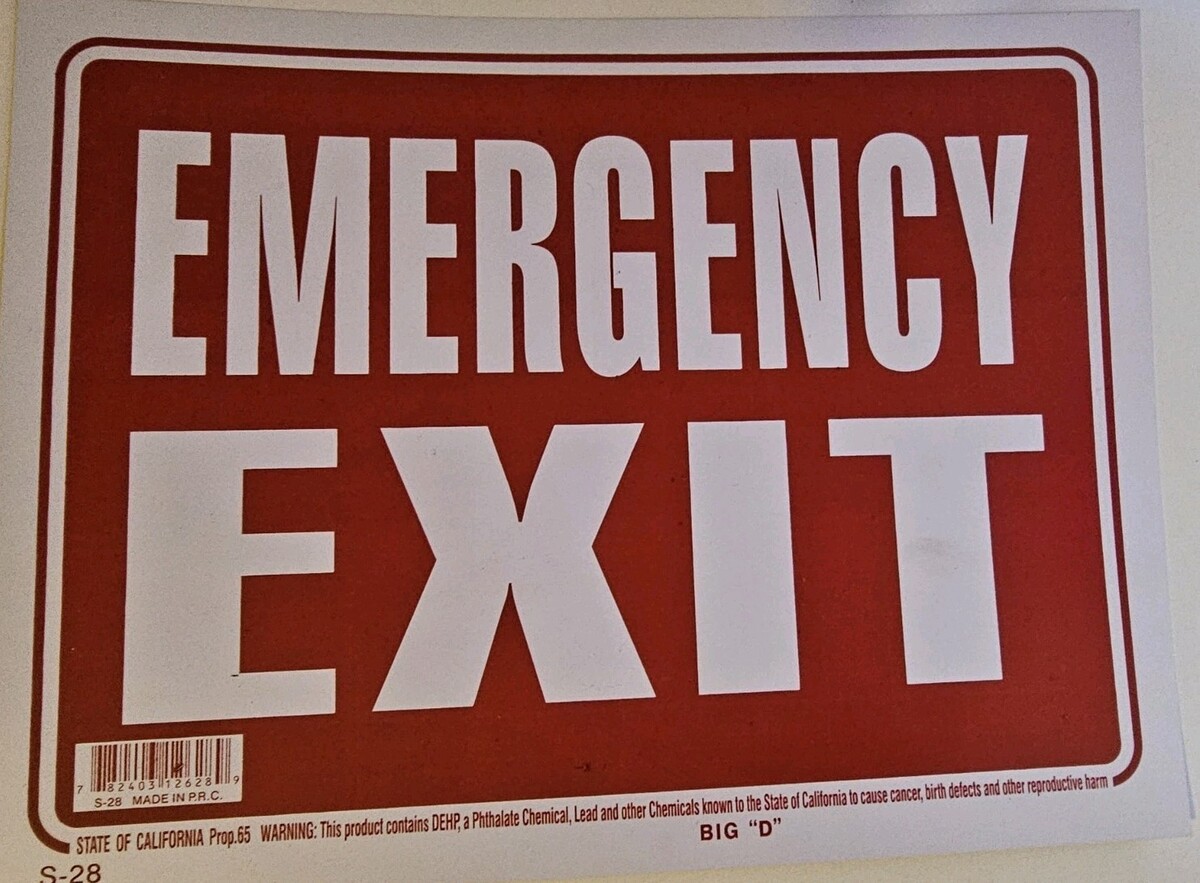 - One Sided EMERGENCY EXIT Sign 8 x 12 Inch - 2 Count, White and Red