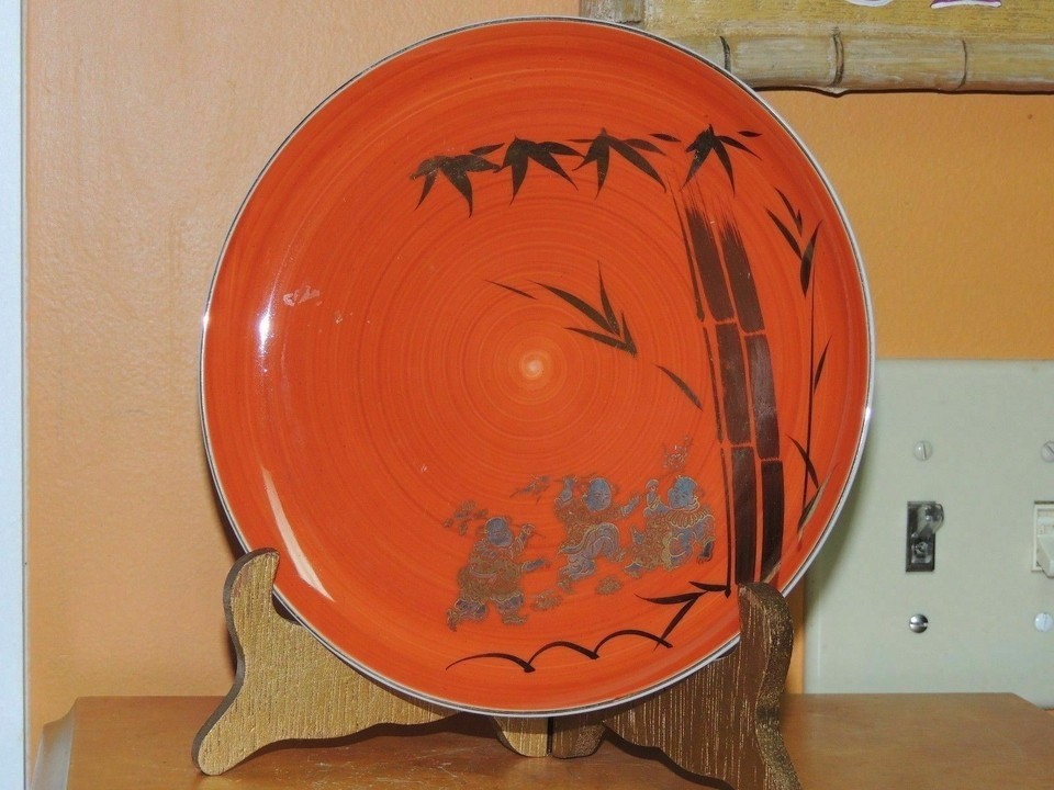 One UCGC Japan Plate 7.5" Orange & Gold Children Bamboo Vintage Japanese