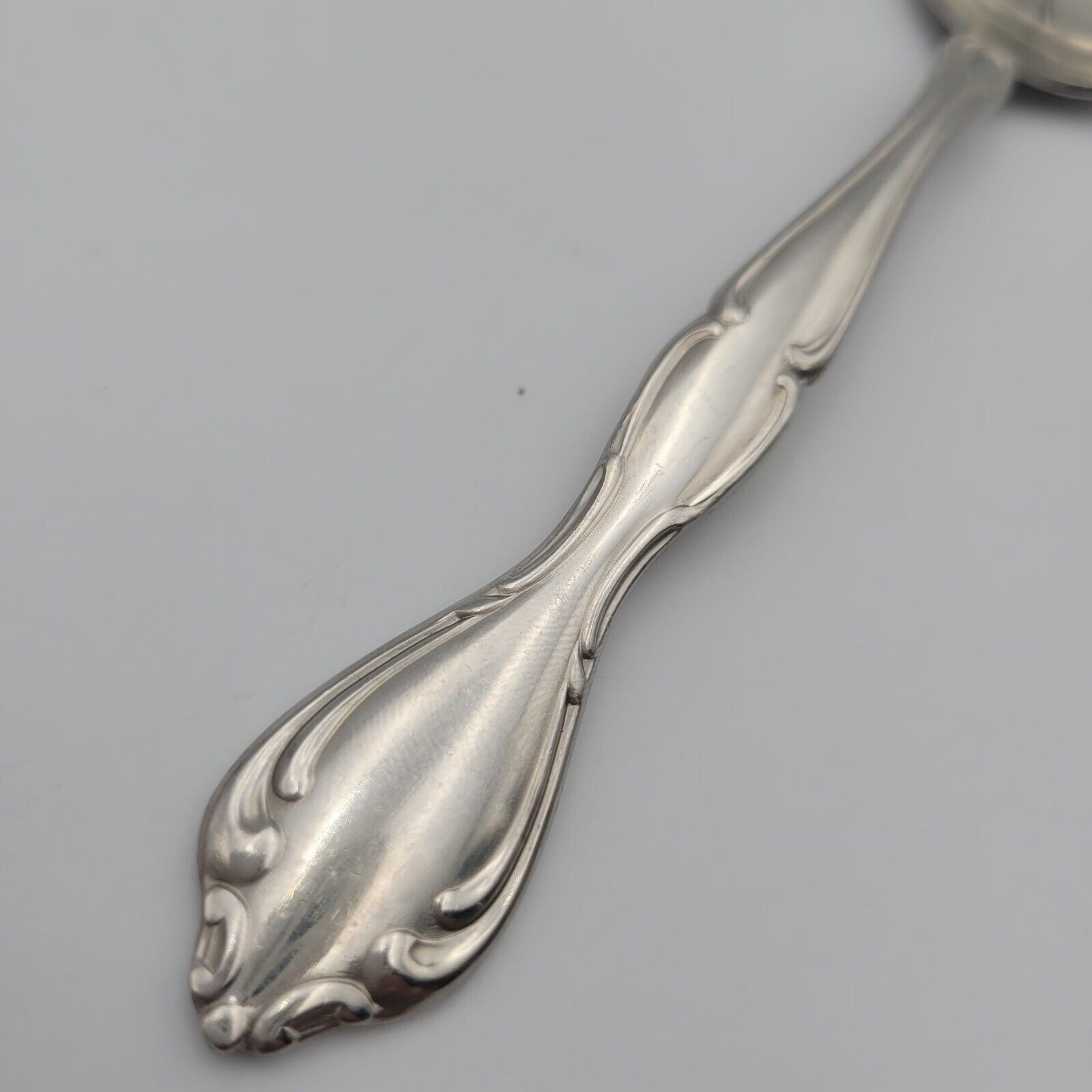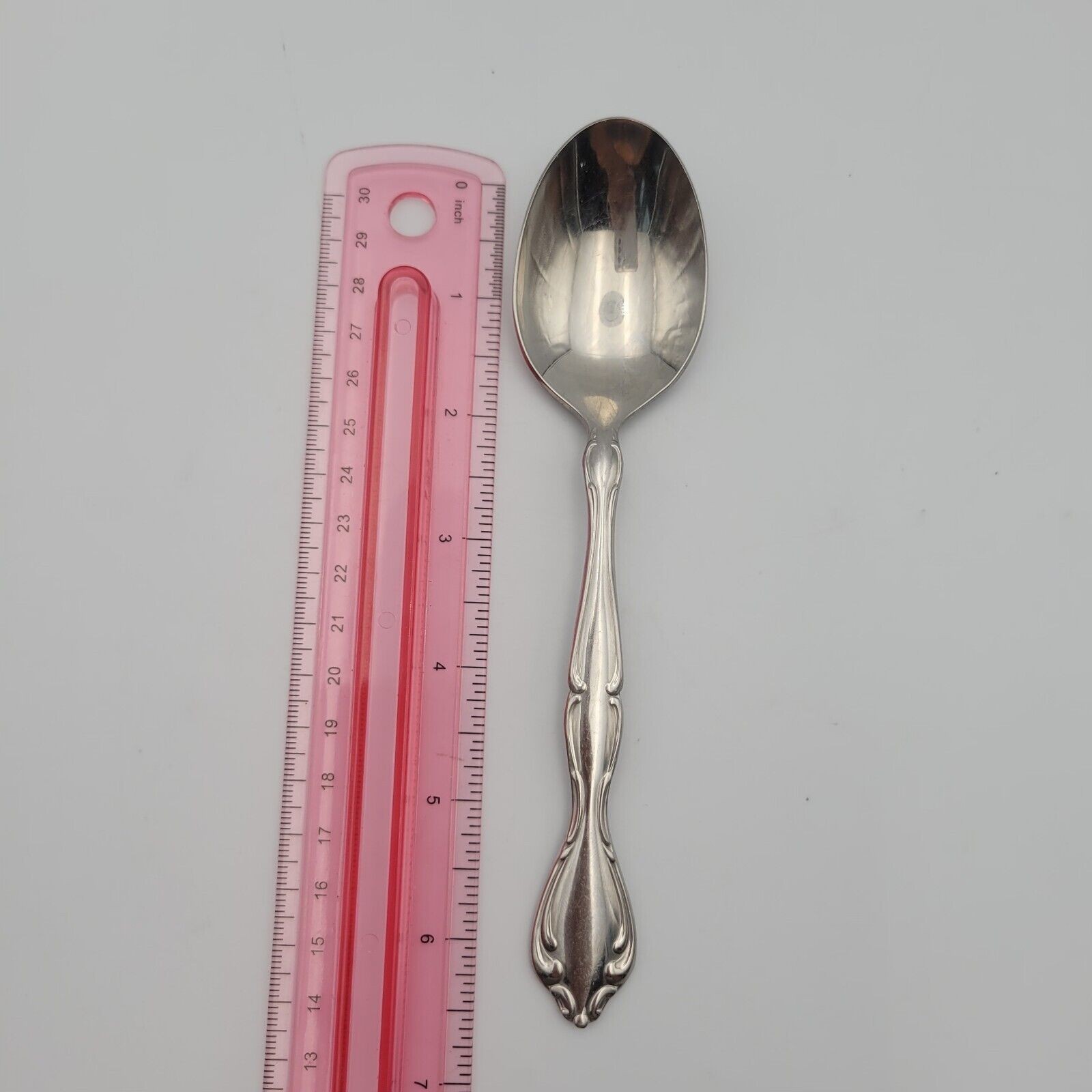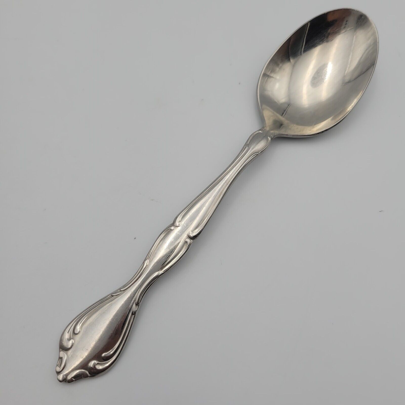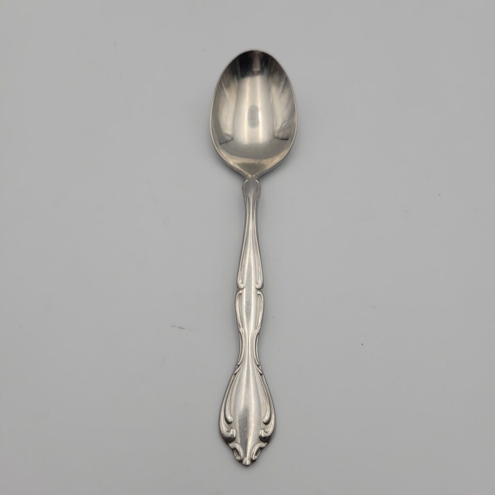 This Oneida Cantata spoon is a timeless piece of flatware that will elevate any dining experience. Made of high-quality stainless steel, this spoon boasts a glossy finish and a beautiful floral handle pattern. It is perfect for both formal occasions and everyday use.