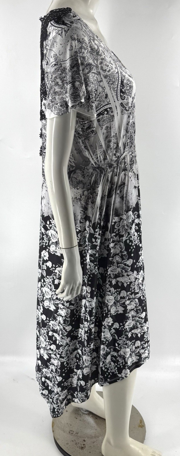One World Live Let Live Maxi Dress Size Large Black White Rhinestone Lace Back