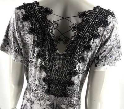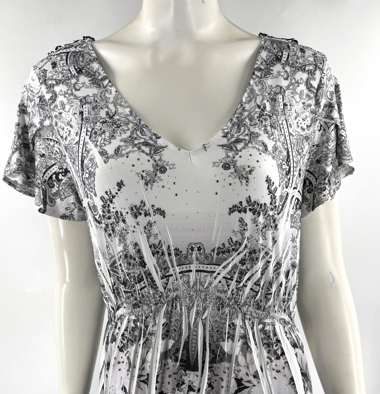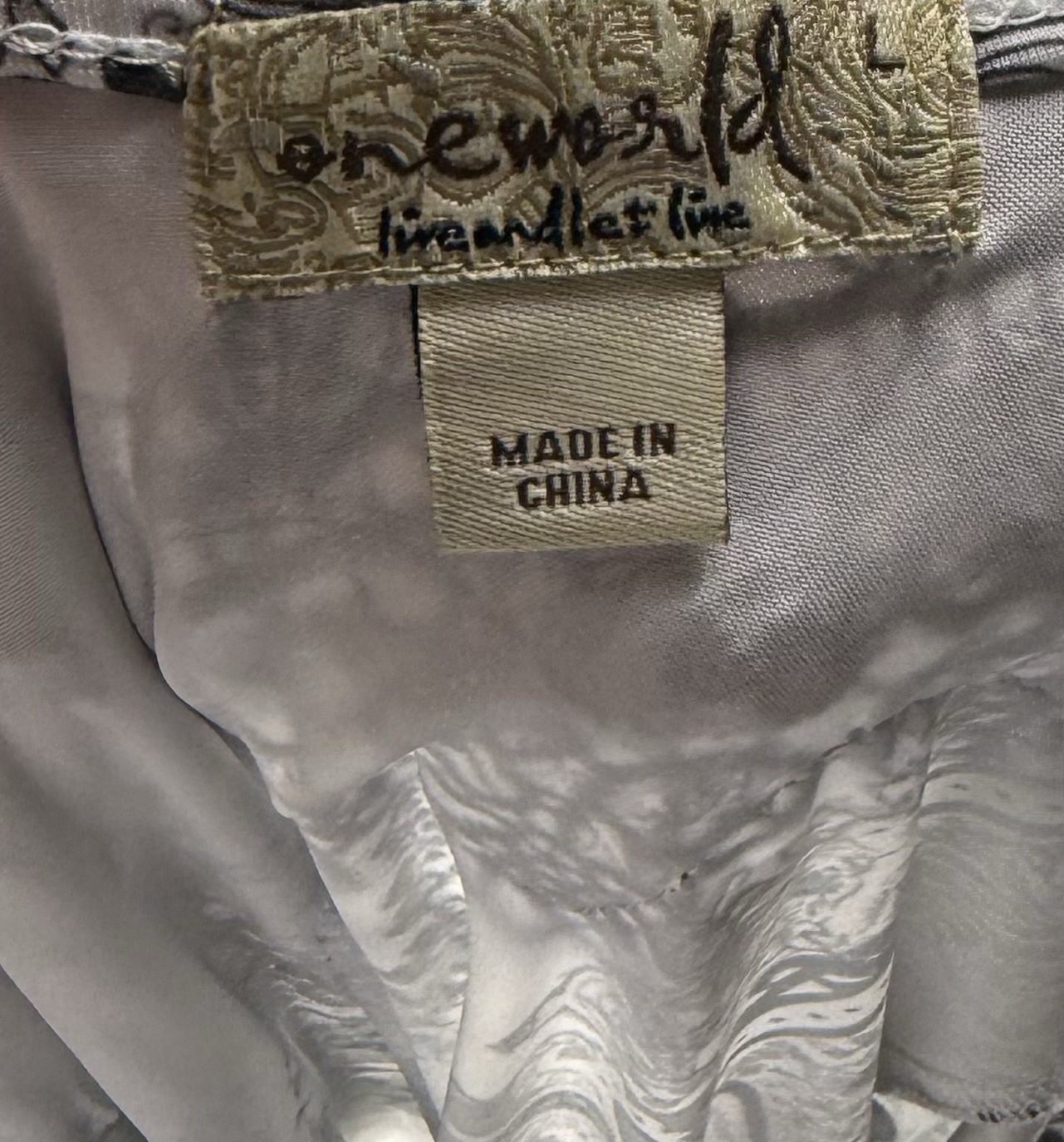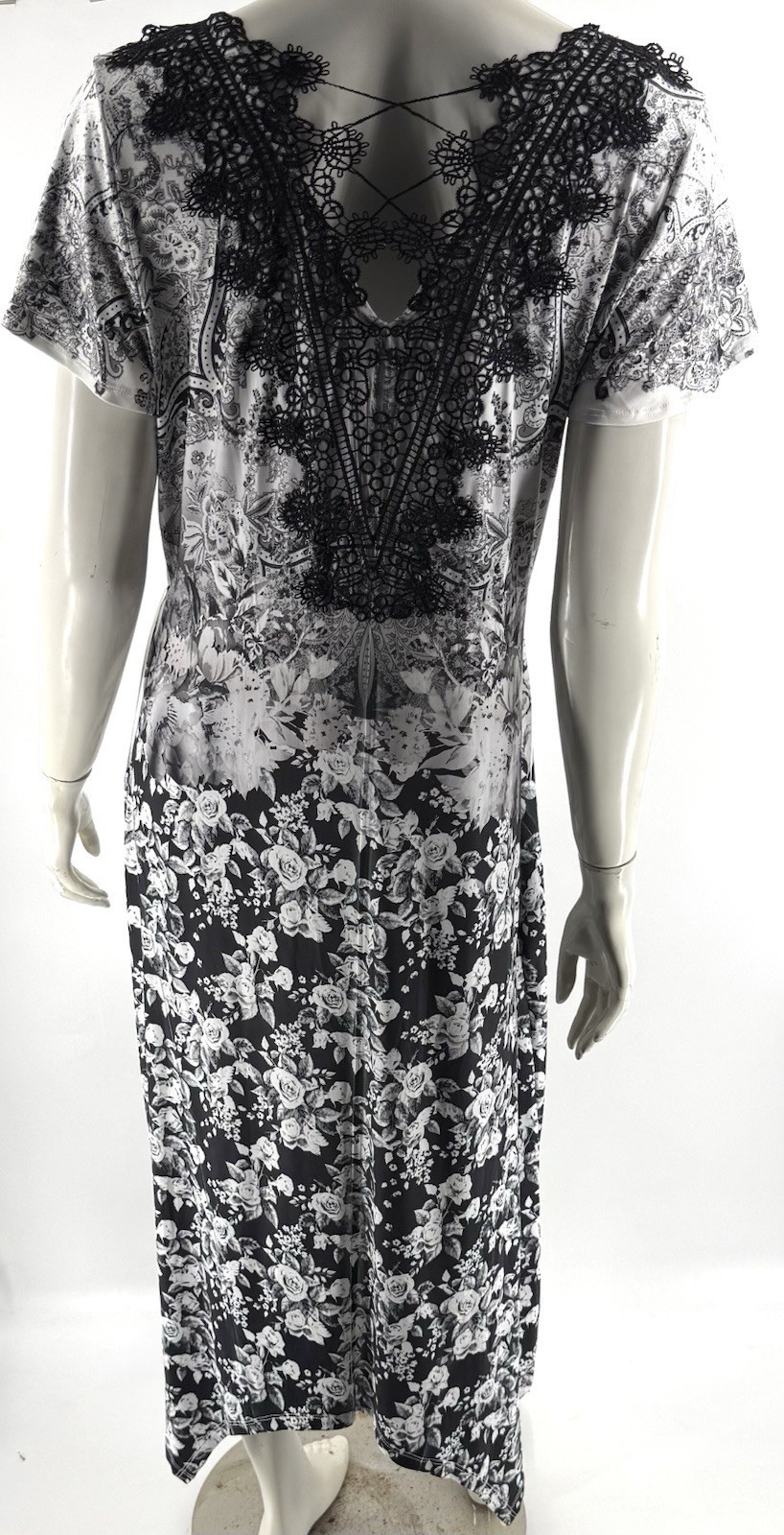- One World Live Let Live Maxi Dress Size Large Black White Rhinestone Lace Back
